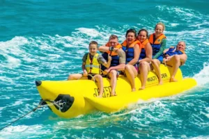Kahung Beach is located just 10 kilometers South of Phuket on the way to Raya Island. The traveling time is around 15-20 minutes from the mainland, which is not far at all. It is highly recommended for those who love the thrill of sea sports, as it is also known as ‘the fun island’ offering a range of sea activities.